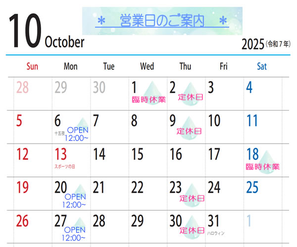 ※10月1日(水)と18日(土)は臨時休業いたします。